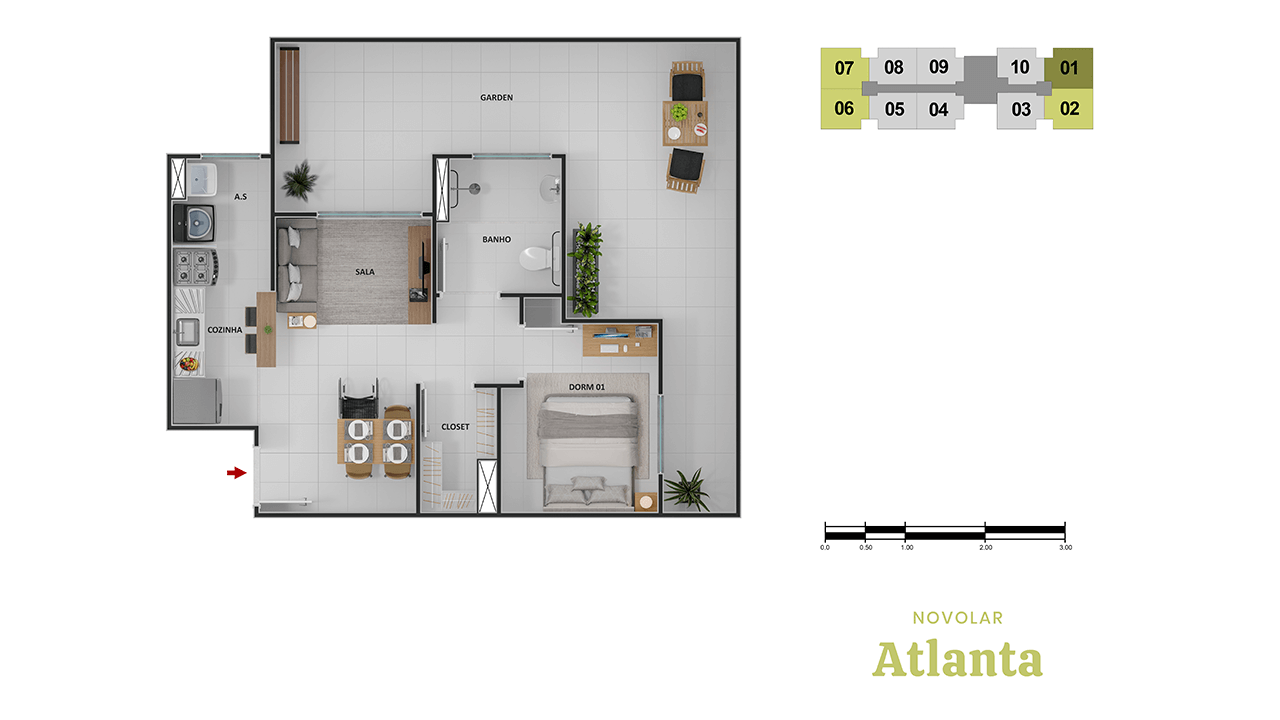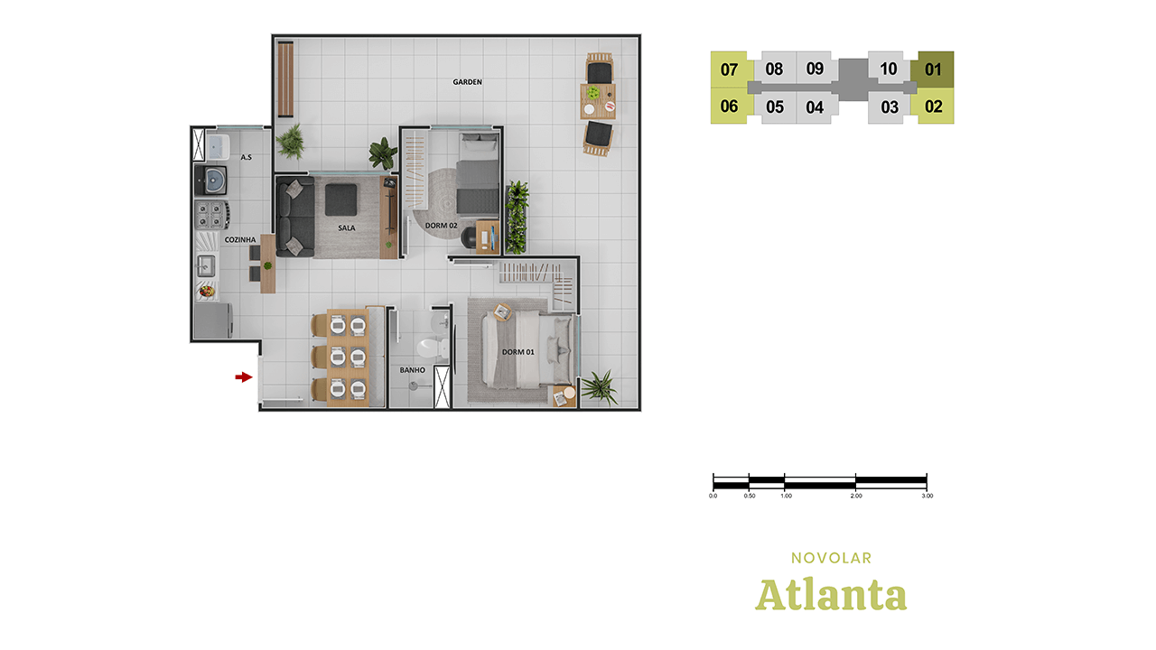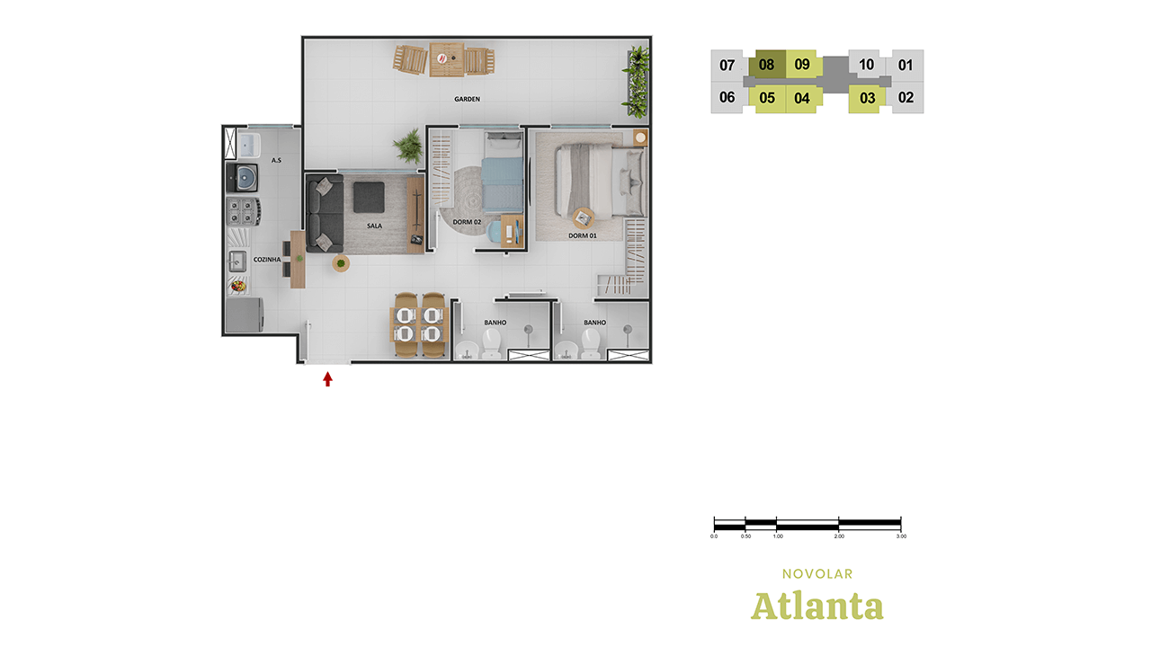 2 quartos e varanda | Opções com Suite e Garden